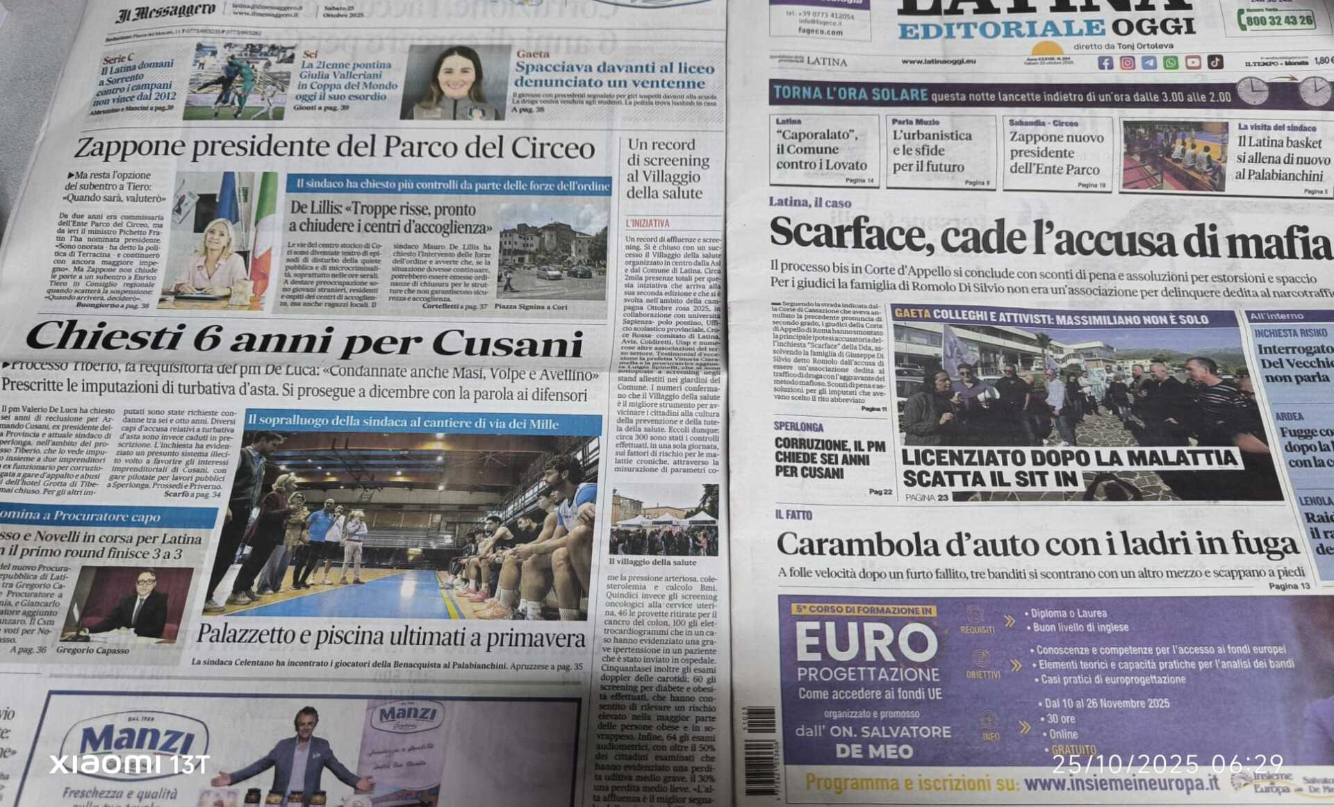 I quotidiani di Latina in un click – 25 ottobre 2025