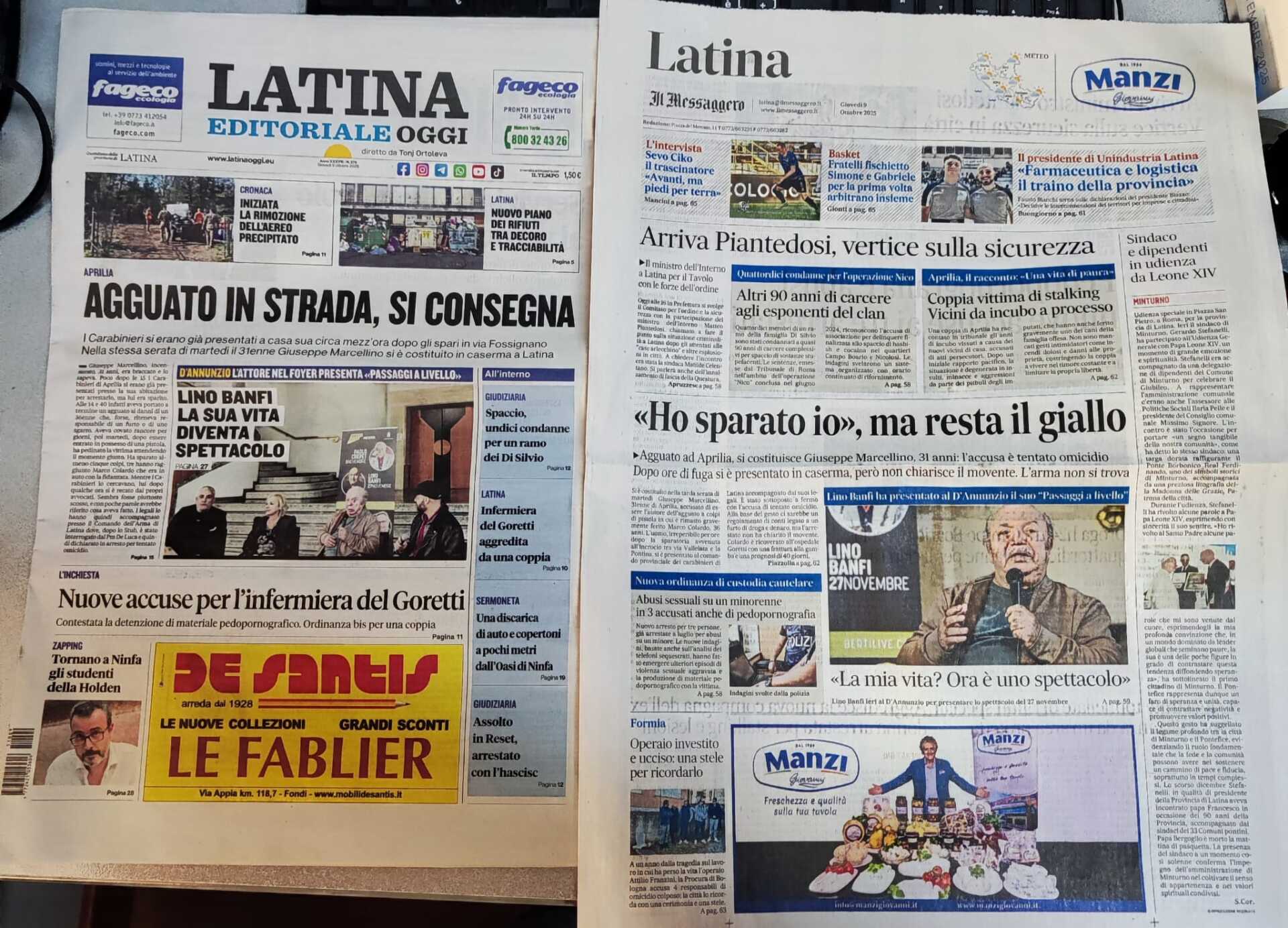 I quotidiani di Latina in un click – 9 ottobre 2025