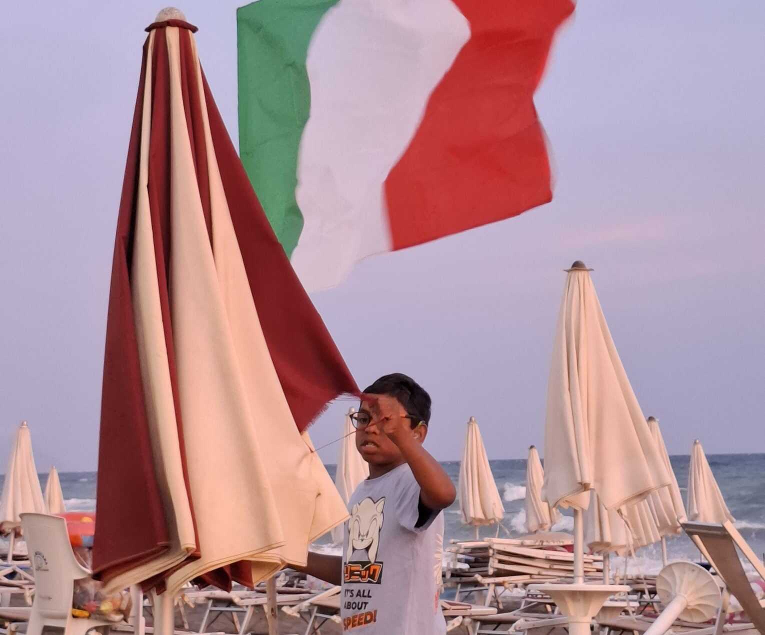 Sì, esattamente, è il bambino degli ombrelloni perché lui ama aprire e chiudere gli ombrelloni e ha un’abilità incredibile per cui sulla riva del mare lo conoscono tutti perché alle sei e mezza del pomeriggio si fa a tutti gli stabilimenti per chiudere gli ombrelloni. Inizialmente sono spaventati di un bambino piccolo che fa questa cosa, poi capiscono che è più abile dei bagnini per cui lui si chiude più ombrelloni possibile, anzi io dico: fateglielo fare perché è bravissimo ed è la sua più grande soddisfazione.