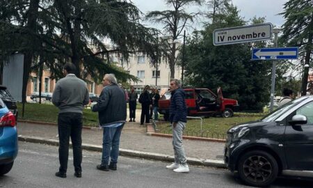 Lo scontro tra due auto, l'utilitaria sbalzata oltre il marciapiede