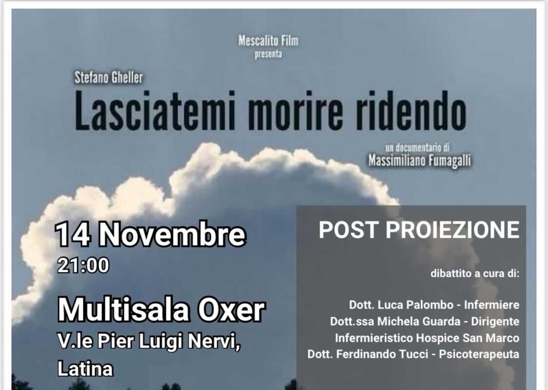 LATINA – Il 14 novembre alle 21, al Cinema Multisala Oxer di Latina, sarà proiettato il film “Lasciatemi morire ridendo”, un’opera che affronta con sensibilità e coraggio il tema del fine vita e del suicidio medicalmente assistito, aprendo una riflessione sul diritto all’autodeterminazione, sulla libertà di scelta e sulla dignità della persona. Al termine della proiezione si terrà un dibattito aperto al pubblico.
