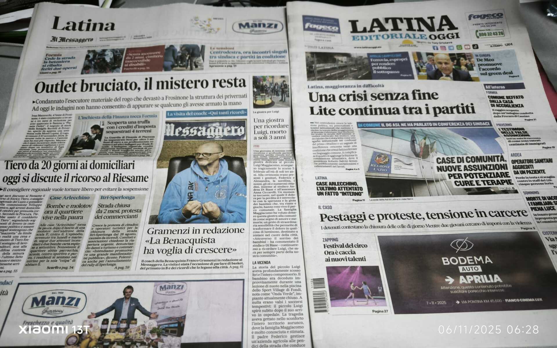 LATINA – Qui trovate Prima Pagina, in un file audio di pochi minuti, i titoli di Latina Editoriale Oggi e del Messaggero Latina
