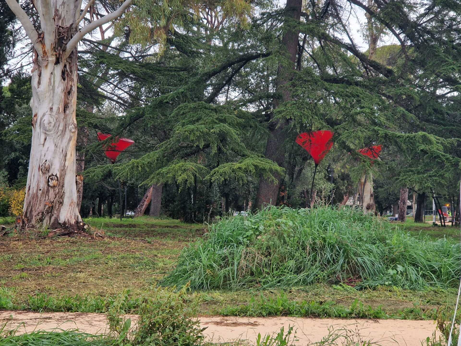Spuntano fiori rossi in Parco Falcone e Borsellino: sono le nuove lampade della zona relax