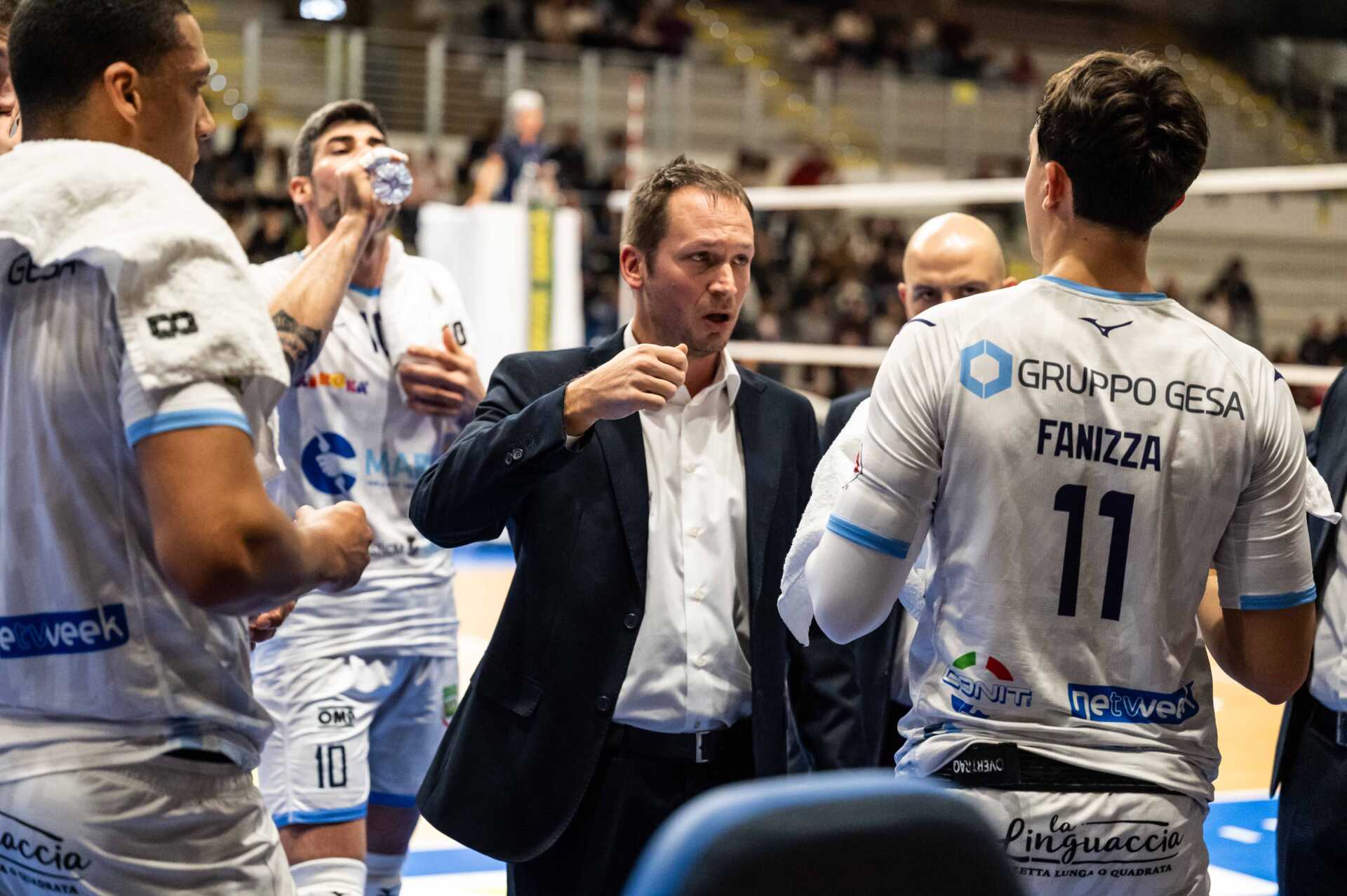 LA GARA – Morato si affida al collaudato starting six con Fanizza al palleggio, opposto Guzzo, Mazzone e Plak al centro, schiacciatori Lanza e Bayram, nel ruolo di libero c’è Currie (assente per infortunio contro Piacenza). Nel sestetto di partenza scelto da Cuttini in cabina di regia c’è Todorovic, Polo e Truocchio al centro, Masulovic opposto, Gardini e Orioli schiacciatori, il libero è Diez.