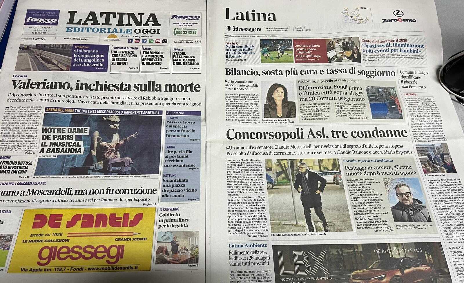 I quotidiani di Latina in un click – 13 dicembre 2025