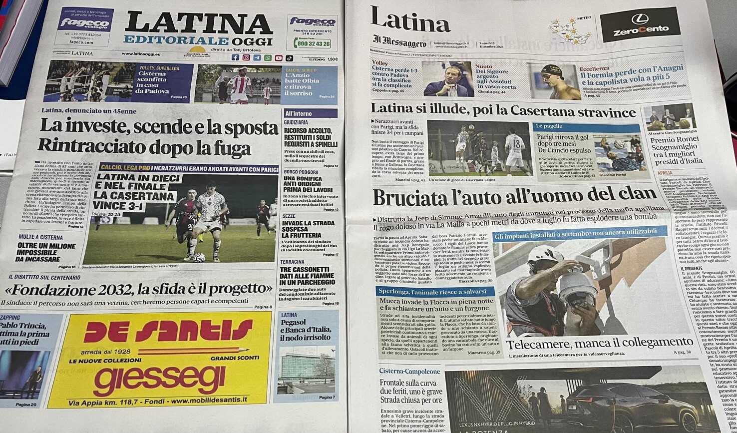 I quotidiani di Latina in un click – 15 dicembre 2025