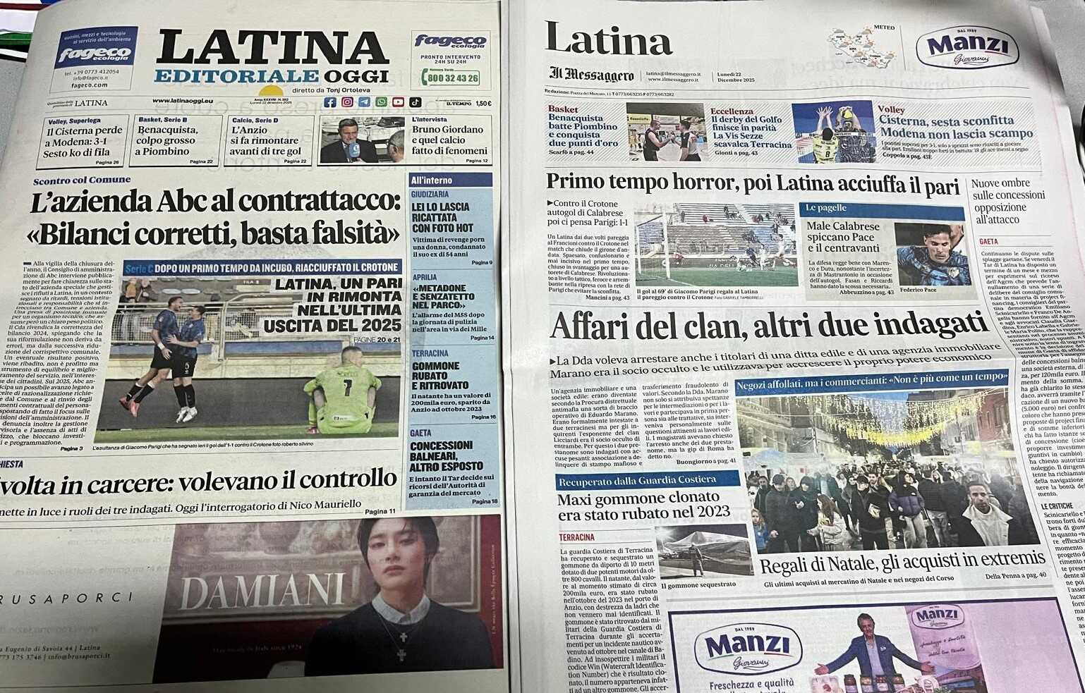 I quotidiani di Latina in un click – 22 dicembre 2025
