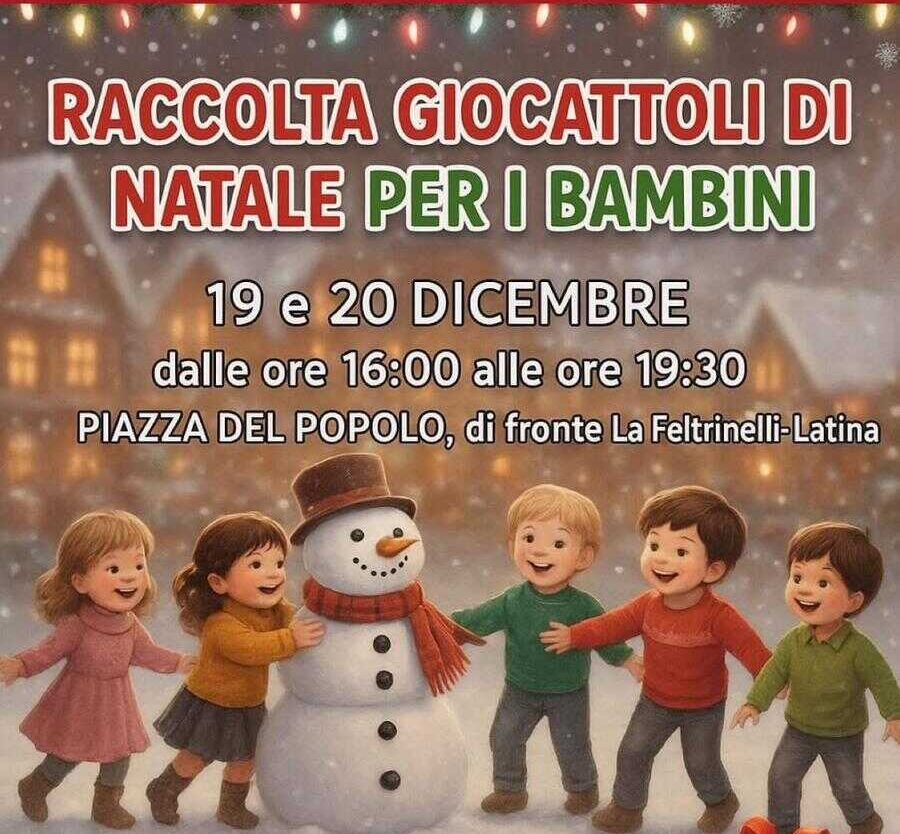 LATINA – Venerdì 19 e sabato 20 dicembre, dalle 16 alle 19.30, in Piazza del Popolo si tiene la raccolta di giocattoli promossa da Fare Giovani Latina, la sezione giovanile del movimento civico