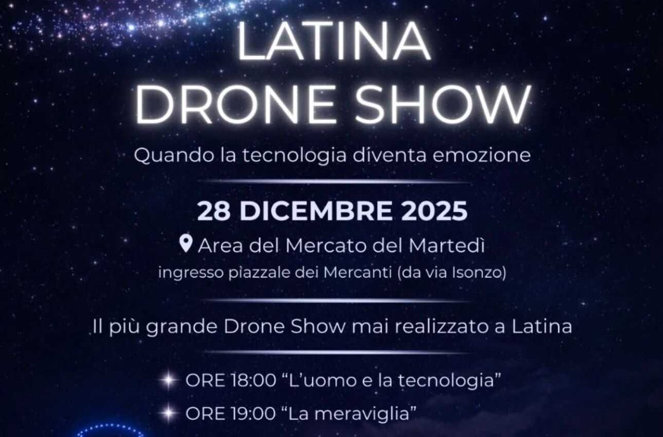 LATINA – Domenica 28 Dicembre, Latina si illumina in programma due straordinari spettacoli di droni luminosi in piazza del Mercato del Martedì: