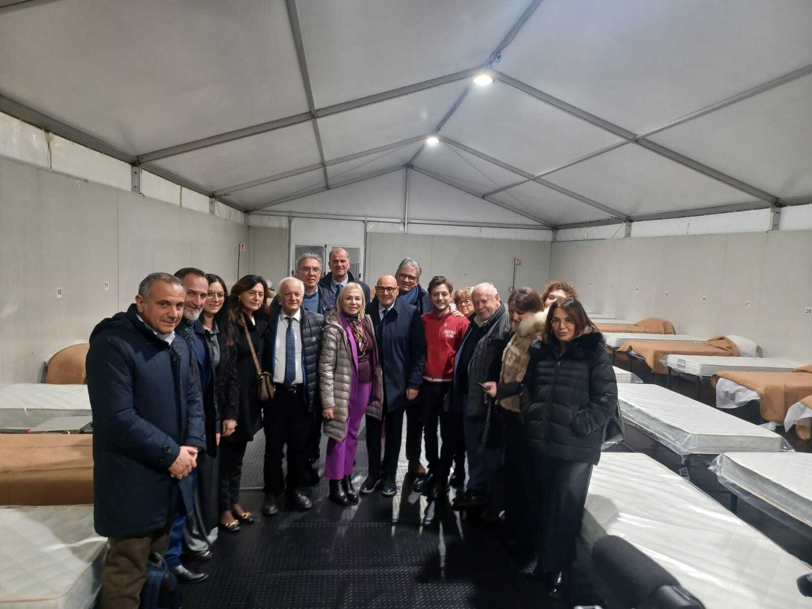 LATINA – Il sindaco di Latina Matilde Celentano e l’assessore ai Servizi sociali Michele Nasso, unitamente al sindaco di Pontinia Eligio Tombolillo e alla prima cittadina di Sermoneta Giuseppina Giovannoli, hanno visitato, questa sera, il dormitorio per l’emergenza freddo aperto dal primo dicembre in zona R6, alle spalle del comando della Polizia Locale. Insieme a loro il vice sindaco di Latina Massimiliano Carnevale, l’assessore Gianluca Di Cocco, l’assessore di Sermoneta Valentina Cianfriglia, e i consiglieri comunali di Latina Simona Mulè, Renzo Scalco, Vincenzo Valletta, Giuseppe Coluzzi e Loretta Isotton, il direttore generale del Comune di Latina Agostino Marcheselli con la dirigente dei Servizi sociali Emanuela Pacifico e la responsabile Uoc Servizi per l’emergenza Elisabetta Maiorana, il presidente del comitato di Latina della Croce Rossa, Lorenzo Munari, e numerosi volontari.