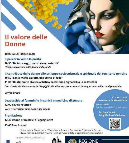 LATINA – Il giorno 10 marzo 2025 presso la Sala San Cesareo della Curia di Latina si terrà l’evento “Il valore delle Donne” organizzato dalla Asl...
