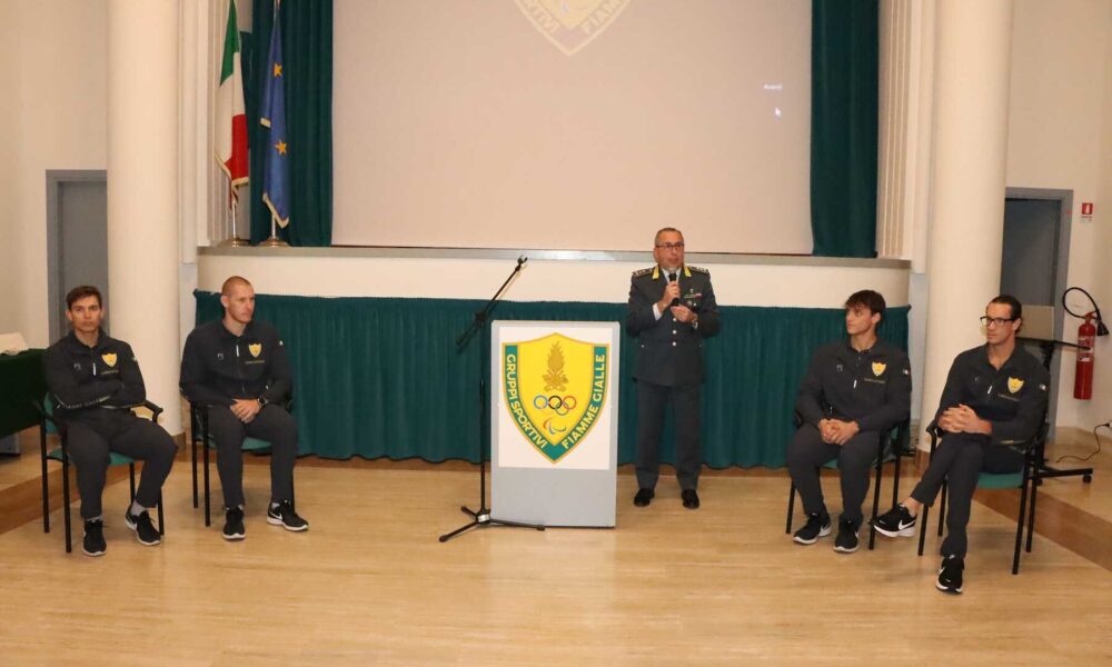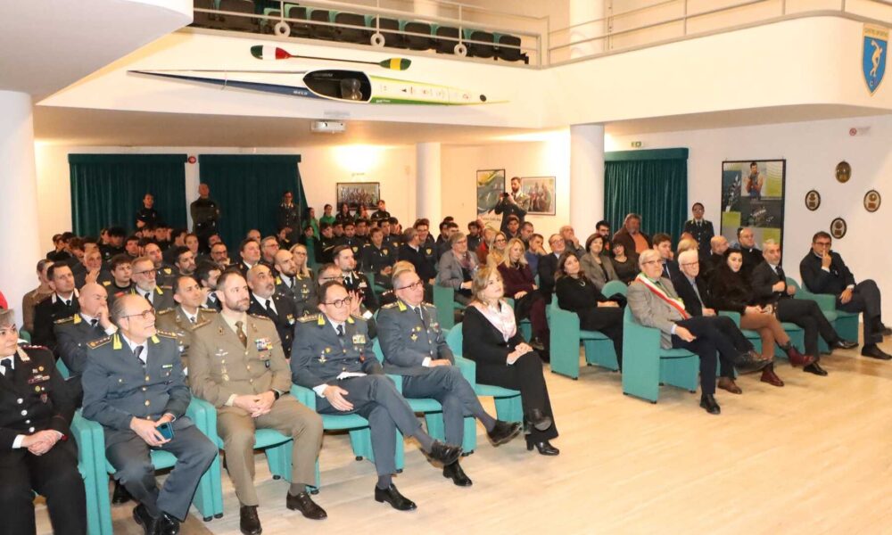 SABAUDIA – Si è tenuta questo pomeriggio a Sabaudia al teatro Filippo Mondelli la cerimonia con cui le Fiamme Gialle hanno festeggiato i quattro atleti che, il 25 settembre 2025 in Cina a Shanghai, si sono laureati Campioni del Mondo di canottaggio nella specialità del “quattro di coppia” senior. Giacomo Gentili, Andrea Panizza, Luca Rambaldi e Luca Chiumento sono stati accolti da una platea gremita di autorità tra le quali il Prefetto di Latina Vittoria Ciaramella, il Comandante del Centro Sportivo della Guardia di Finanza, Gen.D. Antonio Marco Appella e il Sindaco di Sabaudia Alberto Mosca.