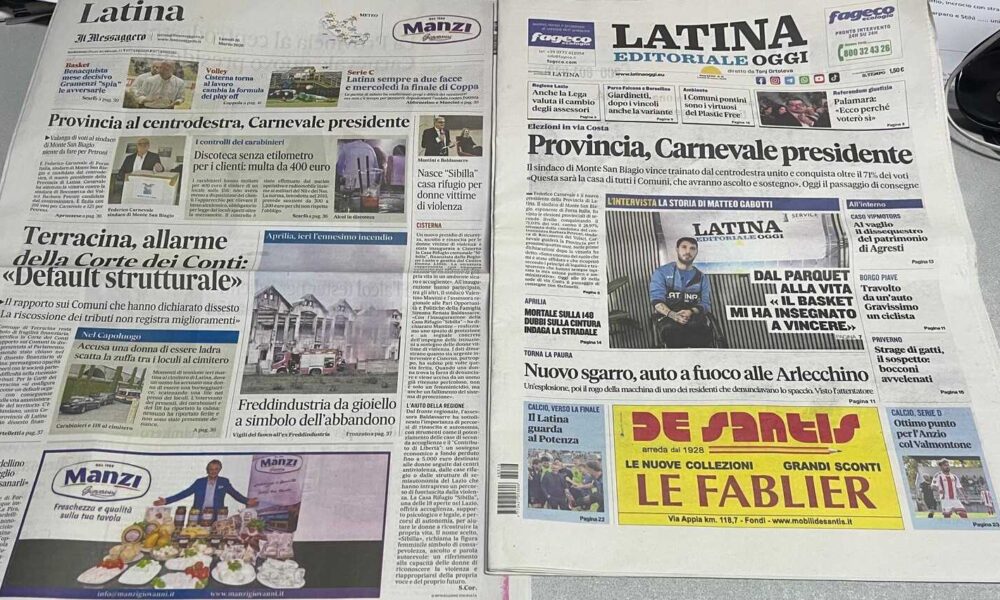 I quotidiani di Latina in un click – 16 marzo 2026