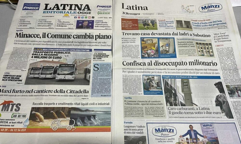 I quotidiani di Latina in un click – 23 marzo 2026