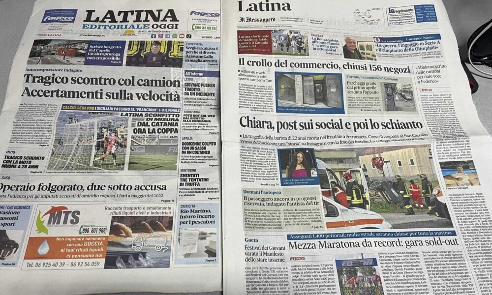 LATINA – Qui trovate Prima Pagina, in un file audio di pochi minuti, i titoli di Latina Editoriale Oggi e del Messaggero Latina