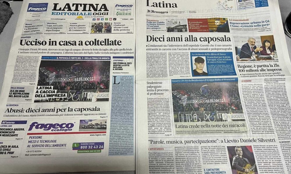 LATINA – Qui trovate Prima Pagina, in un file audio di pochi minuti, i titoli di Latina Editoriale Oggi e del Messaggero Latina