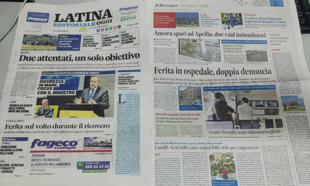 TITOLI7 giorni faI quotidiani di Latina in un click – 10 aprile 2026