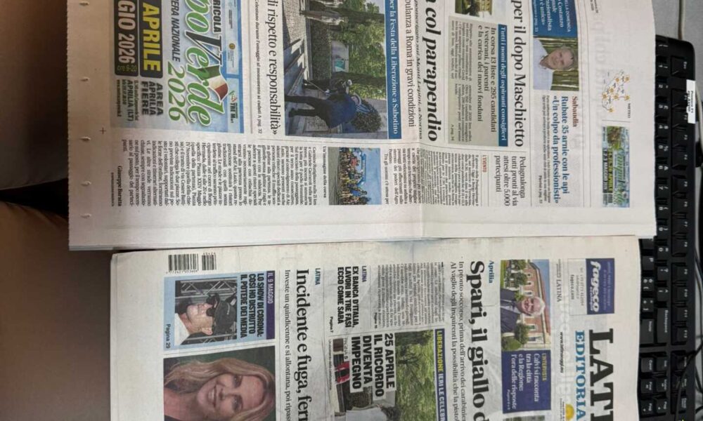 TITOLI4 giorni faI quotidiani di Latina in un click – 22 aprile 2026