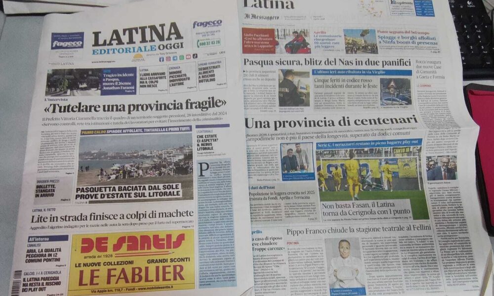 TITOLI3 giorni faI quotidiani di Latina in un click – 4 aprile 2026