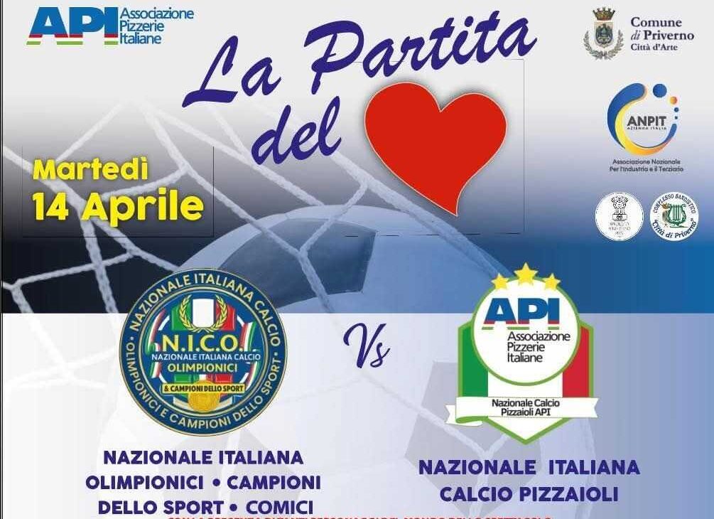 Sport, spettacolo e solidarietà a Priverno: martedì 14 aprile allo stadio “Antonio Palluzzi” arriva la Partita del Cuore, evento benefico il cui ricavato sarà devoluto a sostegno di progetti sociali. La manifestazione è organizzata da Associazione Pizzerie Italiane e dal Comune di Priverno e vedrà in campo sportivi, pizzaioli e personaggi dello spettacolo per una serata all’insegna della beneficenza. Il programma prenderà il via dalle 16 con una partita di calcio a 5 femminile tra la Nazionale Italiana Pizzaiole e le Forty Fighters. A seguire, il momento centrale della giornata: la sfida tra la Nazionale Italiana Olimpionici e Campioni dello Sport e la Nazionale Calcio Pizzaioli API, con la conduzione dello speaker Giuseppe Baratta. Accanto alle partite, spazio anche all’intrattenimento con spettacoli comici e musica dal vivo della tribute band 883 “Loschi Individui”, oltre alla presenza di stand gastronomici. Il ricavato dell’evento sarà devoluto alle associazioni “Ilrosacheosa” e “Associazione Insieme ODV Priverno”, con particolare attenzione ai progetti dedicati alle donne in difficoltà. La presentazione ufficiale dell’iniziativa è in programma lunedì 13 aprile alle 18 nella sala delle cerimonie del Comune, alla presenza del sindaco Anna Maria Bilancia e delle istituzioni coinvolte.
