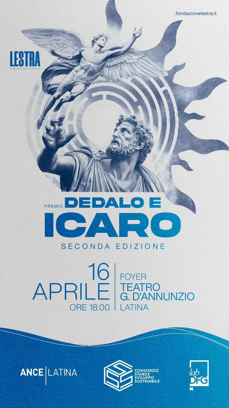 LATINA – Si terrà giovedì 16 aprile alle 18 nel foyer Teatro D’Annunzio di Latina, la cerimonia di premiazione del Premio Dedalo e Icaro, promosso dalla Fondazione Lestra con Ance Latina, il Consorzio Stabile Sviluppo Sostenibile e la casa editrice Lab DFG. “Un riconoscimento dedicato alle migliori tesi di laurea magistrale che affrontano i temi dell’innovazione, della sostenibilità, della progettazione e delle trasformazioni economiche e tecnologiche contemporanee”, spiegano da Ance.