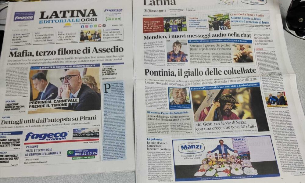 LATINA – Qui trovate Prima Pagina, in un file audio di pochi minuti, i titoli di Latina Editoriale Oggi e del Messaggero Latina