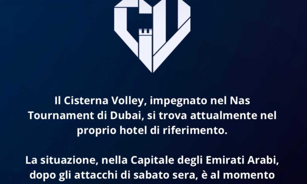 Il Cisterna Volley, impegnato nel Nas Tournament di Dubai, si trova attualmente nel proprio hotel di riferimento. La situazione, nella città degli Emirati Arabi, dopo gli...