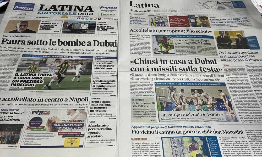 LATINA – Qui trovate Prima Pagina, in un file audio di pochi minuti, i titoli di Latina Editoriale Oggi e del Messaggero Latina