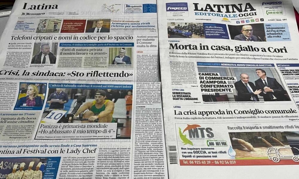 LATINA – Qui trovate Prima Pagina, in un file audio di pochi minuti, i titoli di Latina Editoriale Oggi e del Messaggero Latina