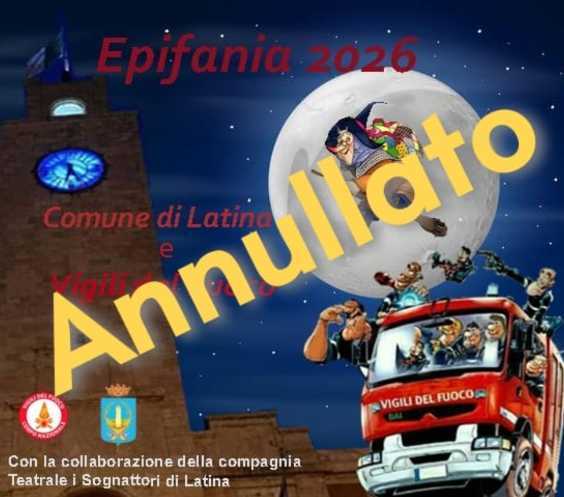 Il comune di Latina fa sapere che a seguito delle condizioni meteorologiche avverse, la manifestazione “Il Volo della Befana” prevista per oggi pomeriggio, in piazza del...