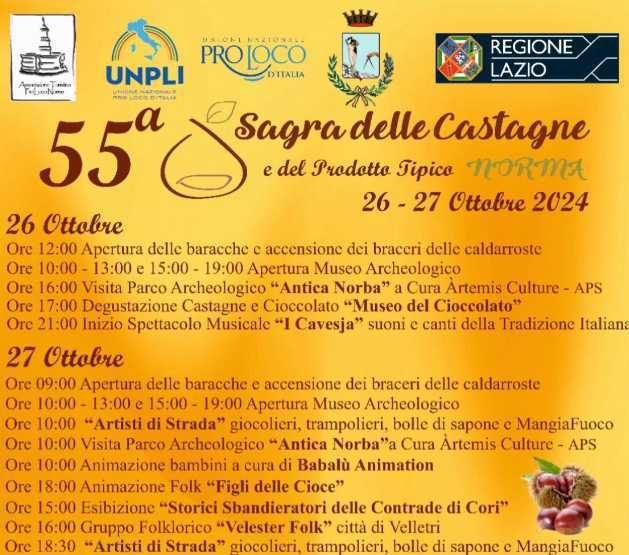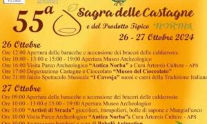NORMA – Ha preso il via nel centro storico di Norma la 55° edizione della Sagra della Castagna. Degustazioni, musica e intrattenimento per bambini oltre alle...