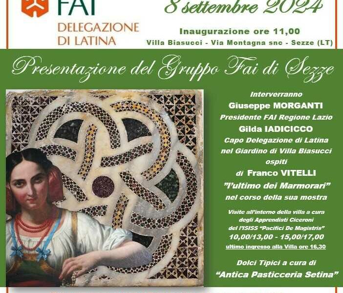 SEZZE – La Delegazione di Latina del Fai organizza in collaborazione con il neonato Gruppo Fai di Sezze un evento che si svolgerà domenica 8 settembre...
