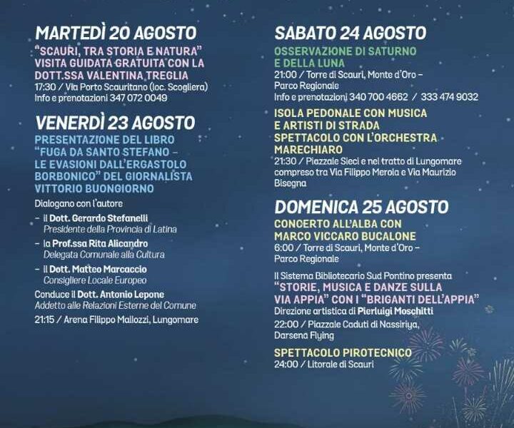 SCAURI – Si riaccendono i riflettori sulla Festa del Mare “Arrivederci a Scauri”, che raggiunge il traguardo delle 61 edizioni Si comincia con “Scauri, tra storia e...