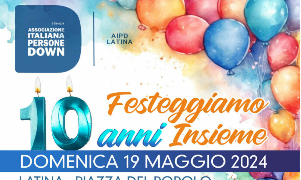 LATINA – Una grande festa in piazza e nella sede per l’Associazione Italiana Persone Down di Latina che celebra domenica 19 maggio il suo decennale. Dieci...