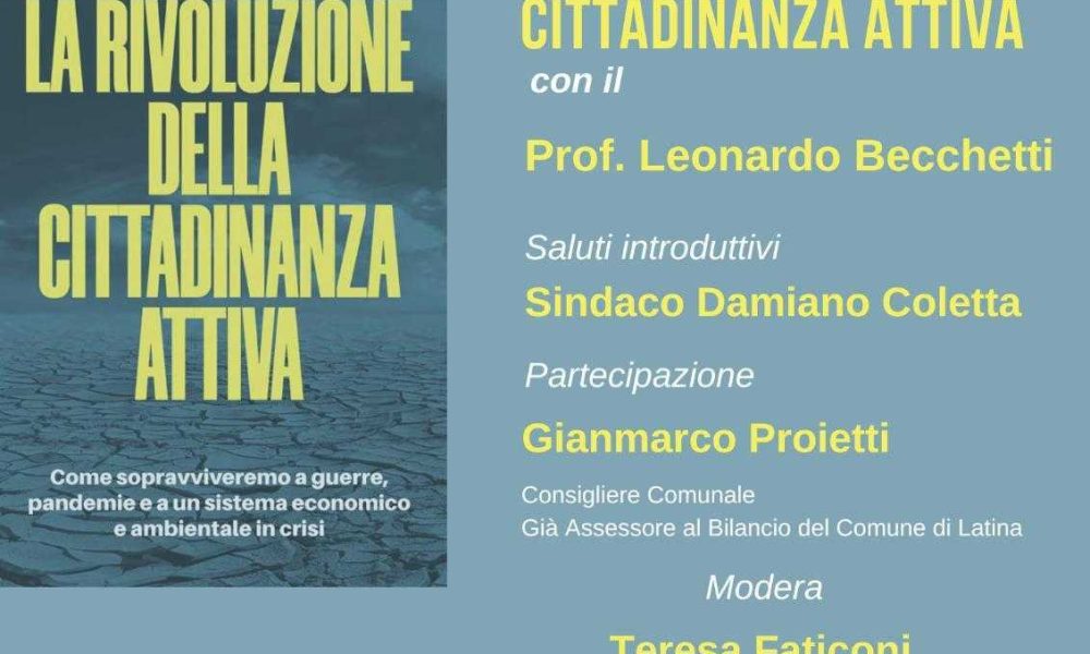 LATINA – Martedì 5 luglio (alle 18,30) nei Giardini del Comune di Latina si presenta il libro “La rivoluzione della cittadinanza attiva” ultima opera del professor...