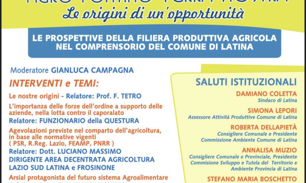 LATINA – Si terrà domani, giovedì 16 giugno, alle 17, al Circolo Cittadino di Latina, il convegno sul tema “Agro pontino terra nostra. Le origini di...