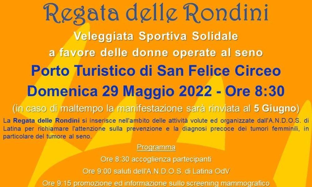 SAN FELICE CIRCEO – L’ A.N.D.O.S. (Associazione Nazionale Donne Operate Al Seno) organizza e promuove ogni anno eventi solidali e appassionanti come la Regata delle Rondini, in...