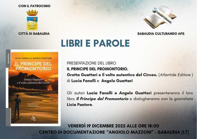 SABAUDIA – Sarà presentato venerdì 19 dicembre 2025 alle ore 18:00, presso il Centro di Documentazione “Angiolo Mazzoni” di Sabaudia, il libro “Il Principe del Promontorio....
