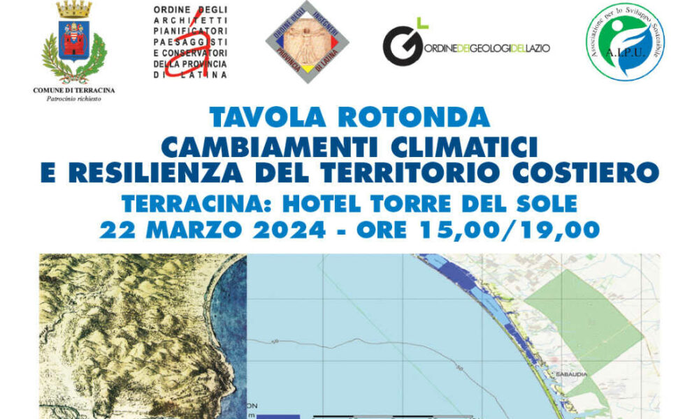 TERRACINA – Si parlerà di “Cambiamenti climatici e resilienza del territorio costiero” in una tavola rotonda in programma il 22 marzo all’Hotel Torre del Sole a...
