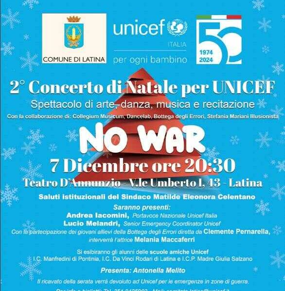 LATINA – Sabato 7 dicembre al Teatro D’Annunzio di Latina (alle 20,30) c’è la 2° edizione del concerto di Natale “NO WAR” organizzato dal Comitato Provinciale...