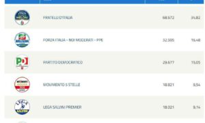 LATINA – PROSEGUE LO SCRUTINIO DELLA CIRCOSCRIZIONE ITALIA CENTRALE – Verso la riconferma grazie ai 448.747 voti di Giorgia Meloni capolista che non entrerà a Bruxelles, con i...