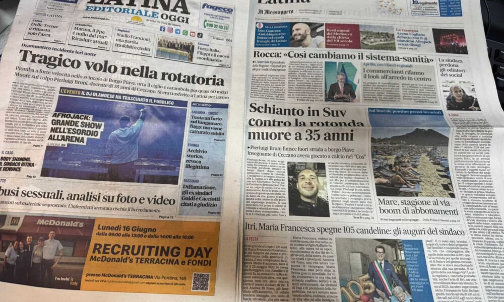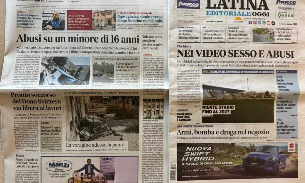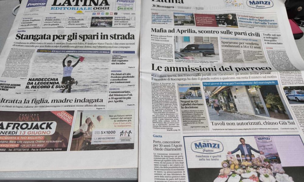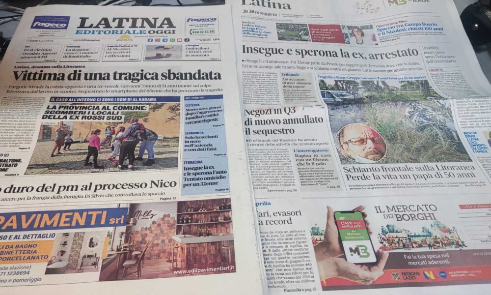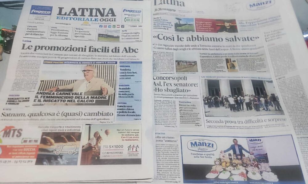 LATINA – Qui trovate Prima Pagina, in un file audio di pochi minuti, i titoli di Latina Editoriale Oggi e del Messaggero Latina. ASCOLTA