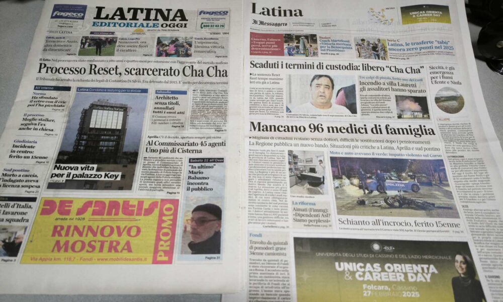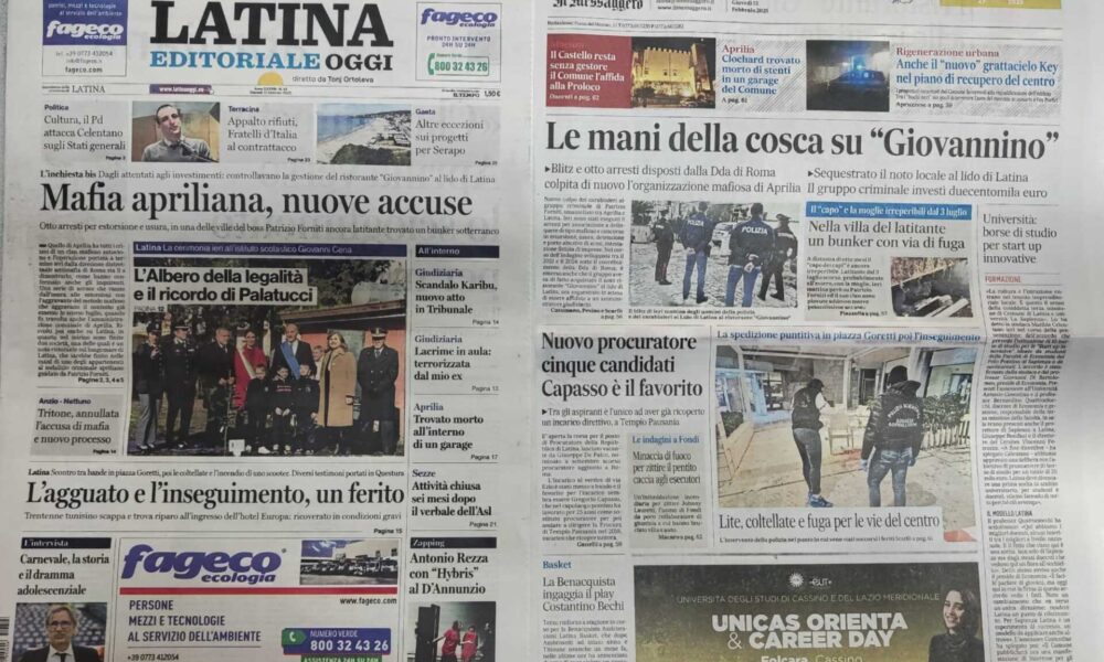 LATINA – Qui trovate Prima Pagina, in un file audio di pochi minuti, i titoli di Latina Editoriale Oggi e del Messaggero Latina. ASCOLTA ...
