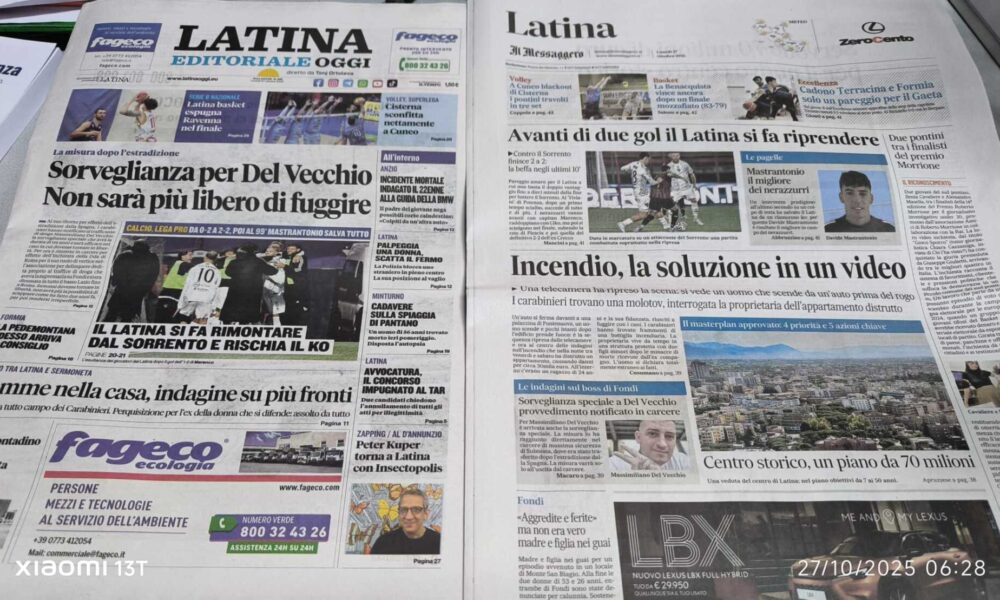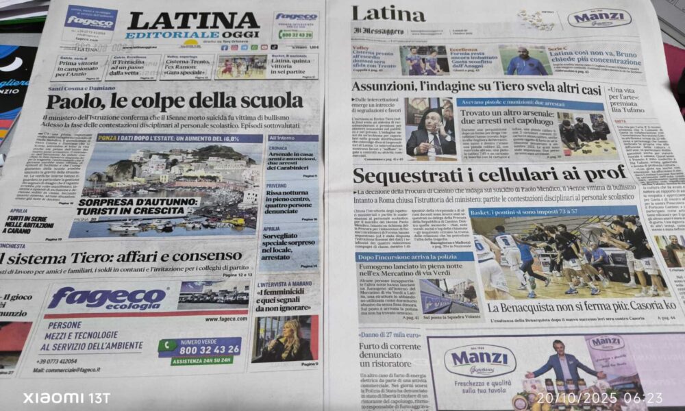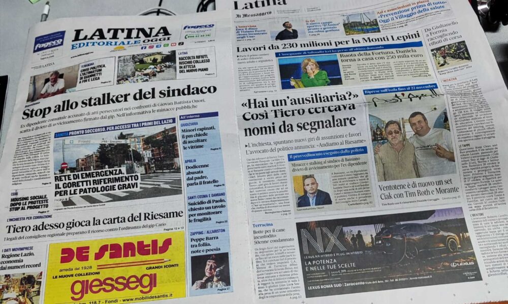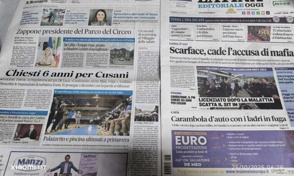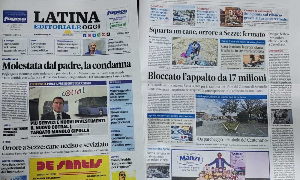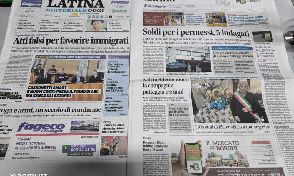 LATINA – Qui trovate Prima Pagina, in un file audio di pochi minuti, i titoli di Latina Editoriale Oggi e del Messaggero Latina.