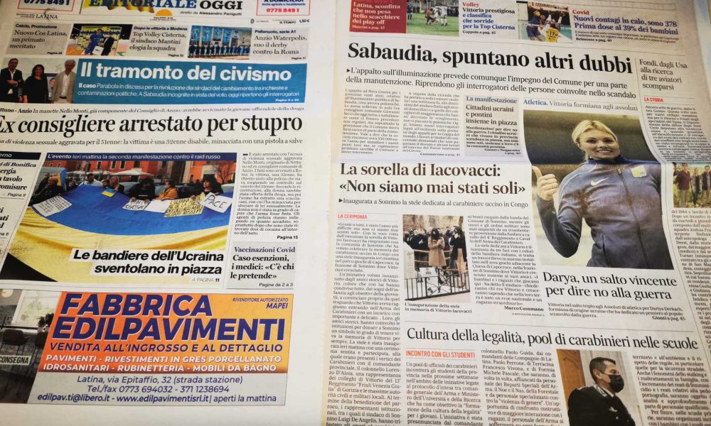 LATINA – Qui trovate Prima Pagina, ora solo in versione web, per dare uno sguardo ai titoli di Latina Editoriale Oggi e Il Messaggero Latina. (audio...